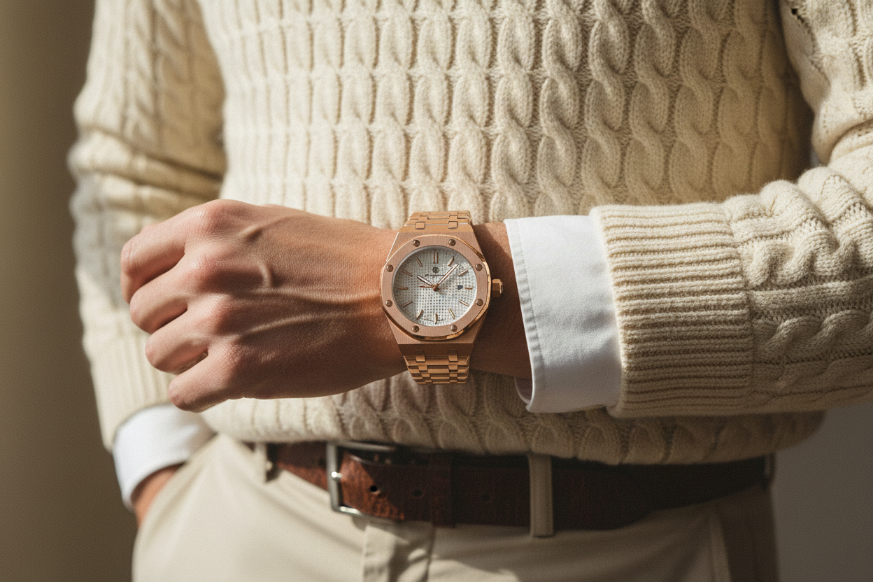 • Integriertes Armband aus Roségold mit verdecktem Faltverschluss